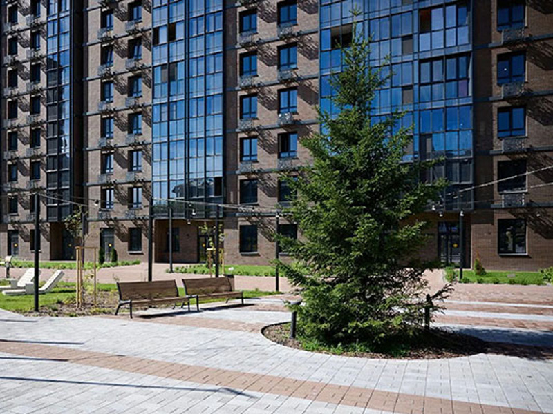 Совместно с ООО «Фенстер». В остеклении ЖК «Пулковский» использовано стекло, закаленное HD Silver Grey 32 производства компании LARTA GLASS..