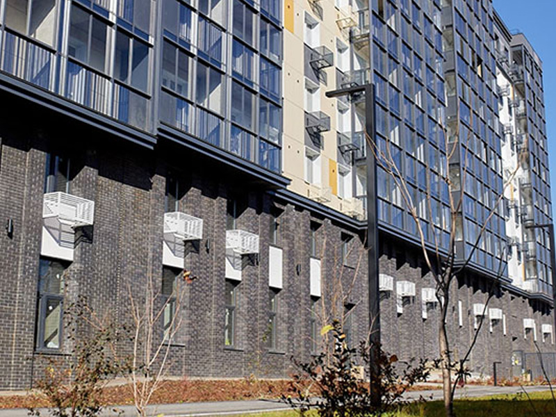 Совместно с ООО СПК «Контакт трейд». В остеклении ЖК «Новые горизонты» использовано стекло, закаленное HD Neutral 67, HD Silver Grey 32 производства компании LARTA GLASS.
